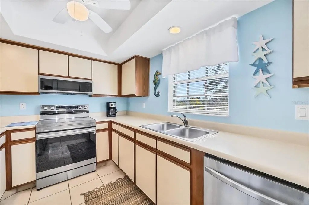 Fully furnished, tastefully decorated, and move-in ready, this updated 2-bedroom, 2-bath condominium is located in the heart of Englewood, within walking distance to shopping, dining, churches, pharmacies, and everyday conveniences, and just minutes to Englewood Beach and Manasota Key. This property is well-suited for full-time living, a seasonal residence, or investment use, with a minimum one-week rental period, making it a strong option for short-term or vacation rentals. The bright, open layout features updated ceilings (no popcorn), upgraded baseboards, and interior paint completed in 2023. The kitchen offers an abundance of cabinetry and is equipped with newer appliances, including a refrigerator, range, dishwasher, and microwave (2024), along with a new water heater (2025). The primary suite includes a remodeled en-suite bathroom (2022) with a walk-in shower. A screened-in front porch provides additional living space and includes a private storage unit at the end of the porch. The community offers a clubhouse, large saltwater swimming pool, shuffleboard, tennis, and pickleball. The entire court will be excavated and redone. The Shuffle Board court will also be resurfaced. The time frame for this project appears to be in the next 4 to 6 months. The court will be lined for tennis and also for 2 pickle ball courts. The fence along the sidewalk will be raised to the 10 feet height so the balls don't fly out of the court anymore.